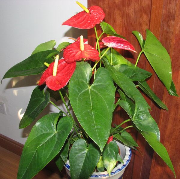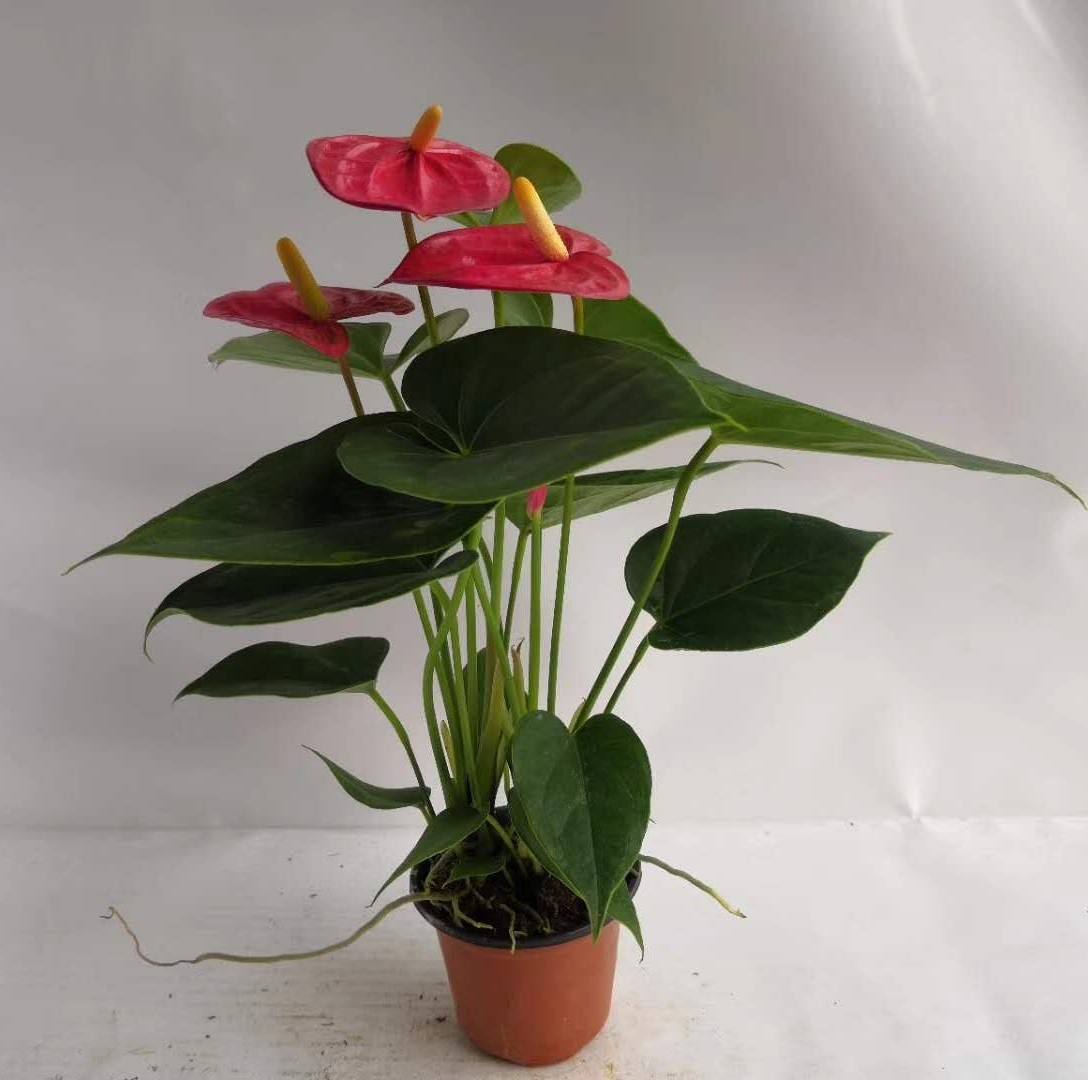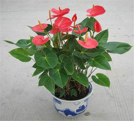 红掌为多年生常绿草本花卉,性喜温热多湿而又排水良好的半阴的环境,怕干旱和强光暴晒,适宜生长昼温为26-32℃,夜温为21-32℃。所能忍受的最高温为35℃,可忍受的低温为14℃。红掌花叶俱美,花期长、为优质的切花材料。用红色花烛为主材,配上小菊、霞草、艳山姜、变叶木瓶插,有着浓厚的江南乡惰。若以花烛为主花,篮插,配以文心兰、报岁兰、百合、天门冬,是一份精美无比的节日礼物。可以吸收人体排出的废气(氨气、丙酮),也可以吸收装修残留的各种有害气体(甲醛等),同时可以保持空气湿润,避免人体的鼻粘膜干燥。